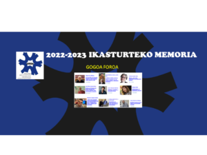Jarraian aurkezten den memoriak aukera ematen du Gogoa Foroak 2022-2023 ikasturtean hitzaldi bakoitzari buruz prestatu dituen dokumentuetan nabigatzeko.
