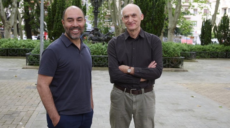 De izquierda a derecha, Víctor Herrero y José María Esquirol, en Pamplona. Iñaki Porto